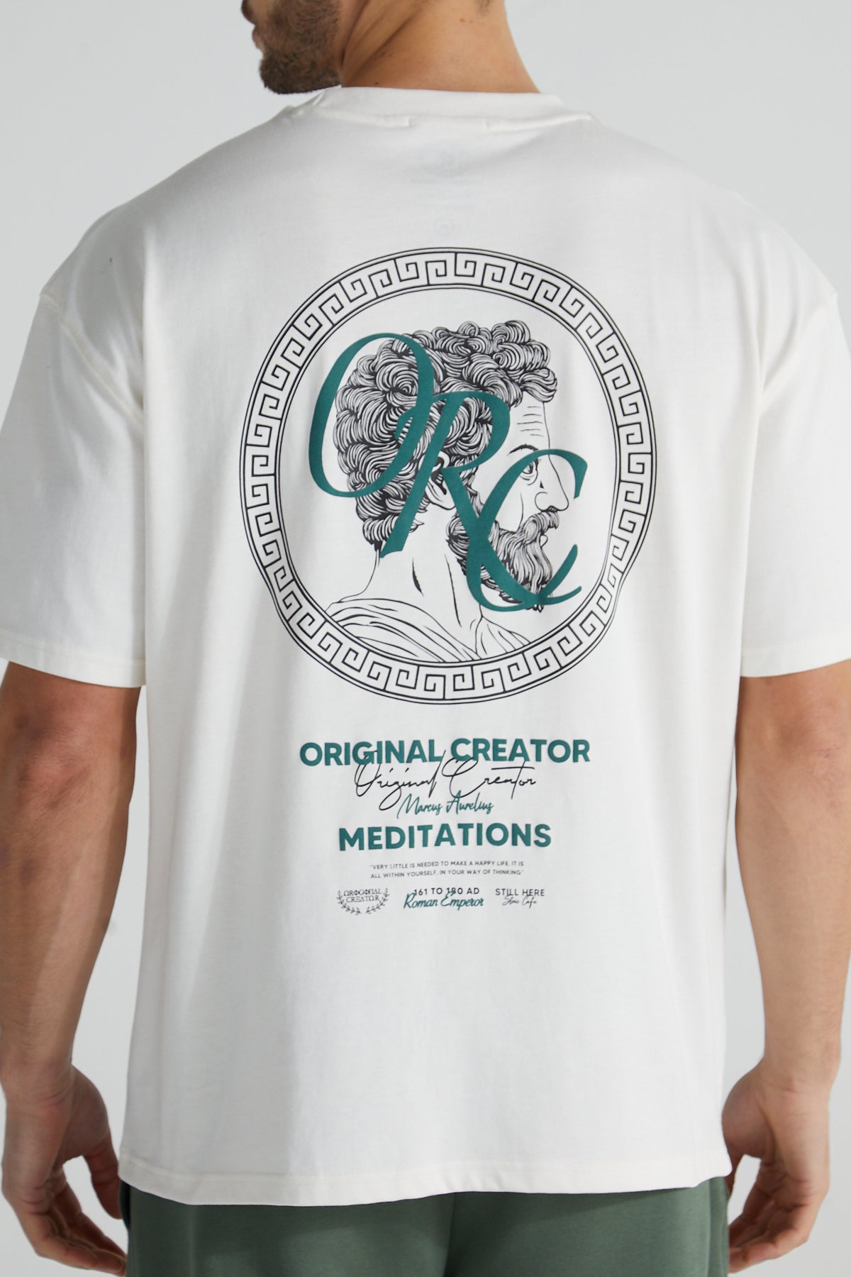 Featuring a bold back print of the Roman Emperor himself, framed with Original Creator’s signature detailing, this piece merges classic philosophy with modern streetwear. Whether you’re in the gym, on the move, or simply taking a moment for yourself, the Meditations Tee is a statement of focus, resilience, and self-discipline.